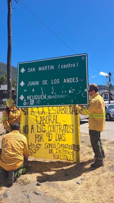 Este lunes nuevamente marcharon trabajadores del Parque Nacional Lanín. Hace unas semanas lo hicieron los combatientes de incendios forestales del ICE-incendio-Comunicación y Emergencias- debido a que le daban de baja a sus contratos.