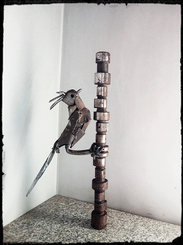 “Plasmar la escultura con aves, surgió de jugar con uno de mis hijos con sus animales de plástico, mirar enciclopedias, y compartir esos momentos de juego me llevó a hacer obras inspiradas en la naturaleza”.