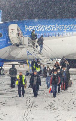 El avión, que llegó con pasaje completo, tocó la pista del aeropuerto Chapelco- Aviador Campos a las 7:50. Los turistas fueron recibidos por el gobernador Omar Gutiérrez y por una copiosa nevada como presagio de otra temporada récord en la bella aldea de montaña. Luego hubo una conferencia de prensa en la que también participaron el presidente de Aerolíneas Argentinas, Pablo Ceriani; el intendente local, Carlos Saloniti y su par de Junín de los Andes, Carlos Corazini y el ministro de Turismo, Sandro Badilla, entre otras autoridades.