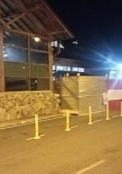 El proyecto no es tan complejo, es prolongar un techo existente, y lo único que se observa es la empalizada de la obra, y la gente debió esperar bajo la lluvia
