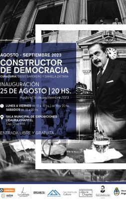 La muestra “Constructor de democracia” se inaugurará el viernes 25 de agosto a las 20 hs en la Sala Municipal de Exposiciones Lidaura Chapitel y podrá ser visitada hasta el 16 de septiembre.