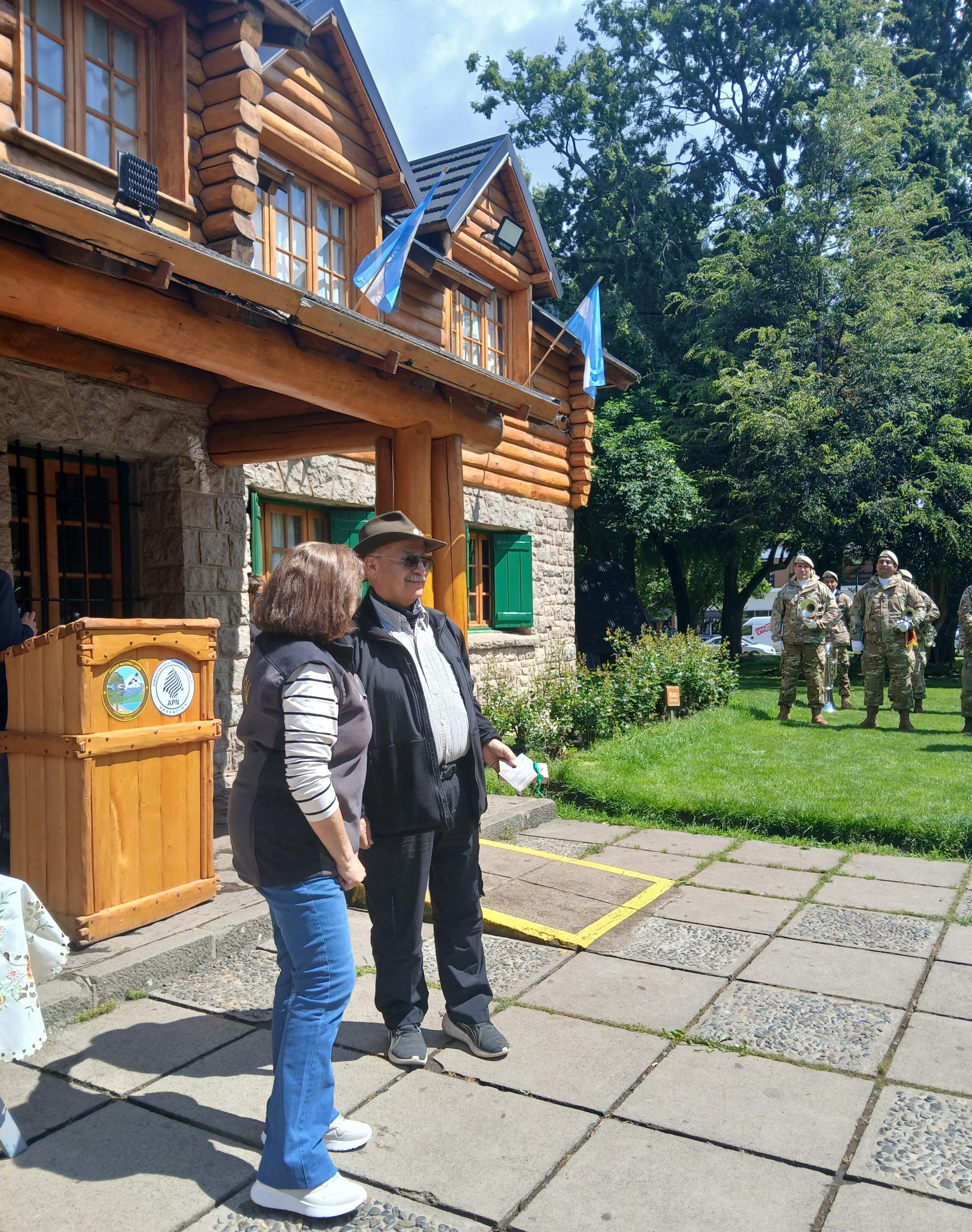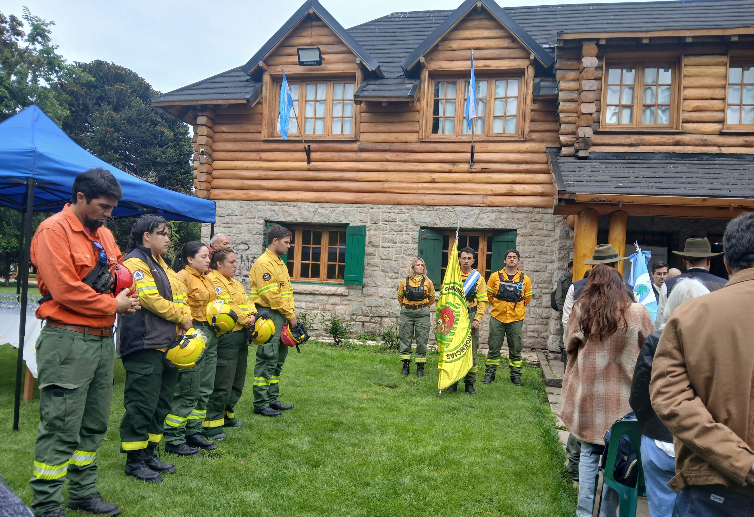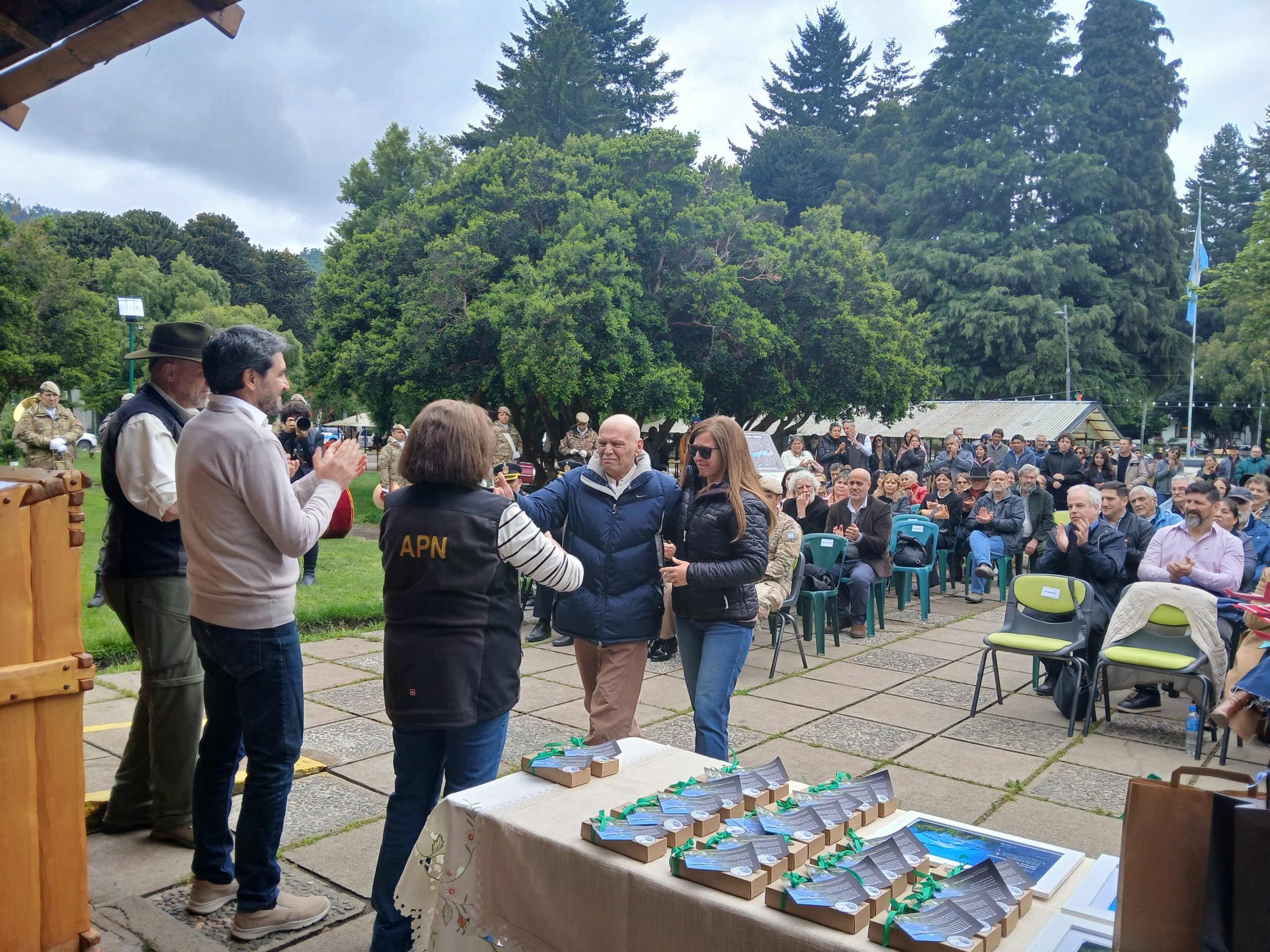 Y 122 años después frente a la primera intendencia del Parque Nacional Lanín construida en 1946, declarado Patrimonio Histórico, hoy Centro de Visitantes y Museo, se realizó este lunes 10 de noviembre el acto recordando quienes son parte de la institución, quienes se incorporan a ella como los nuevos brigadistas, a los guardaparques que fueron y los que están.