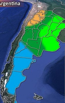 – Sobre las provincias del Litoral, centro y norte de Buenos Aires, y el centro y Este de Córdoba vemos que allí se registran precipitaciones por encima de los valores normales, sintiéndose mayormente sus efectos desde Septiembre/Octubre en adelante.