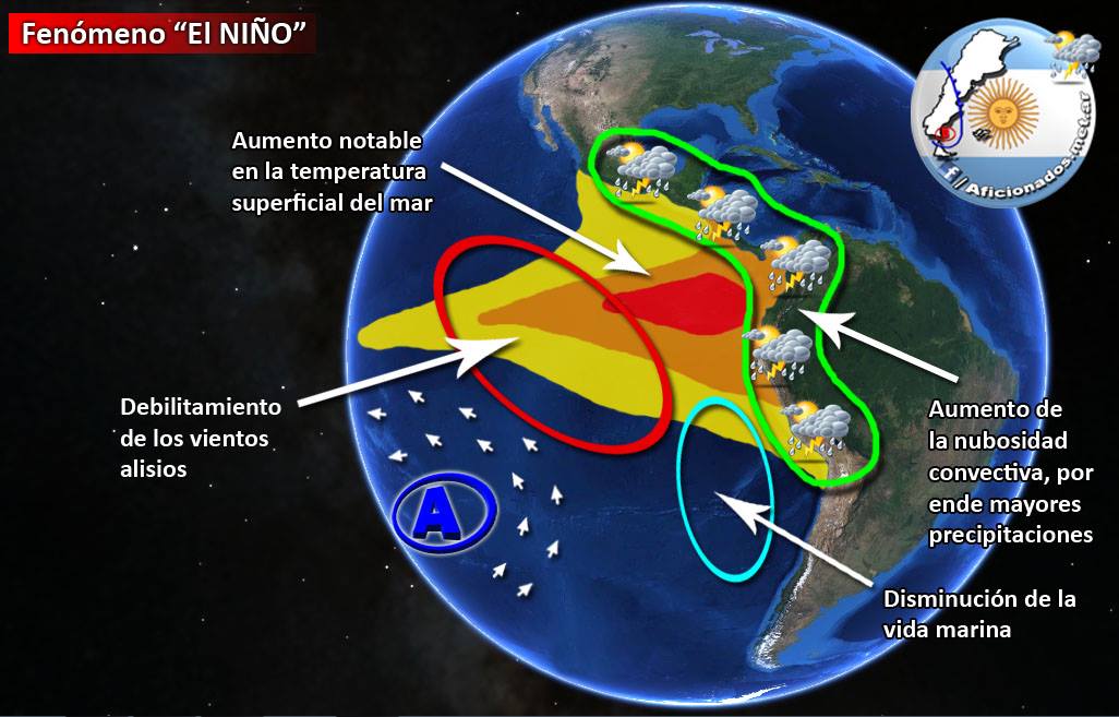 El Niño afecta a todo el planeta, y principalmente se debe a que el Océano Pacífico Oriental sufre un calentamiento anormal en sus aguas, allí logra generar un cambio en el comportamiento normal de la atmósfera.