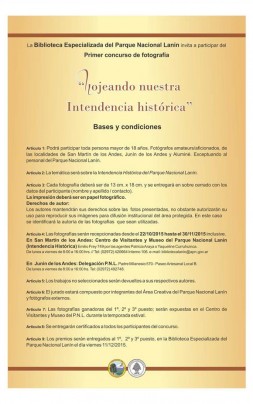 Es en el marco del tercer aniversario de la Biblioteca Especializada del Parque Nacional Lanín, en que se propone este concurso fotográfico que se relaciona con la intendencia histórica, declarada hace unos meses monumento histórico nacional .