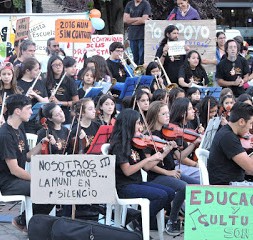 Las orquestas en el mes de marzo hicieron presentaciones en plazas de las distintas ciudades, en Buenos Aires frente al Ministerio de Educación y luego en el Cabildo, en nuestra ciudad en la plaza del centro cívico.