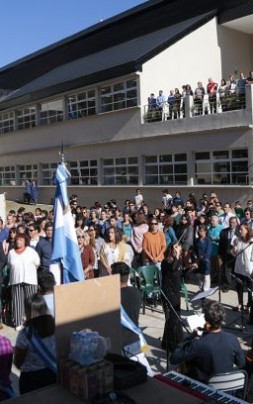 Participaron el intendente local, Carlos Salonitti, la primera directora de la escuela Alcira Garibaldi, el director actual, Marcelo Ávila, representantes de la comunidad Mapuche Curruhuinca, alumnos y ex alumnos, padres y madres.