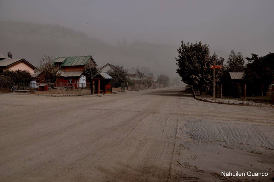 Y como parte del Comité de Emergencia, salí de noche, eran las 9 de la mañana, para una reunión y la ruta estaba desierta, las cenizas eran parte de esa presencia indeseada. Y nos tapamos la boca con un buf, y la nariz, como ahora con un virus invisible, y los ojos con lentes, que no podían ser de sol, porque no se podía ver. Y entonces comenzó la triste tarea de asistir, de pedir que no se despilfarrara el agua, porque el río Quilquihue tenía ya su manto de cenizas. Y los filtros se tapaban, y fue la Cooperativa de Agua la que cumplió con parte de su personal la maravillosa tarea de que ese líquido vital no nos faltara.